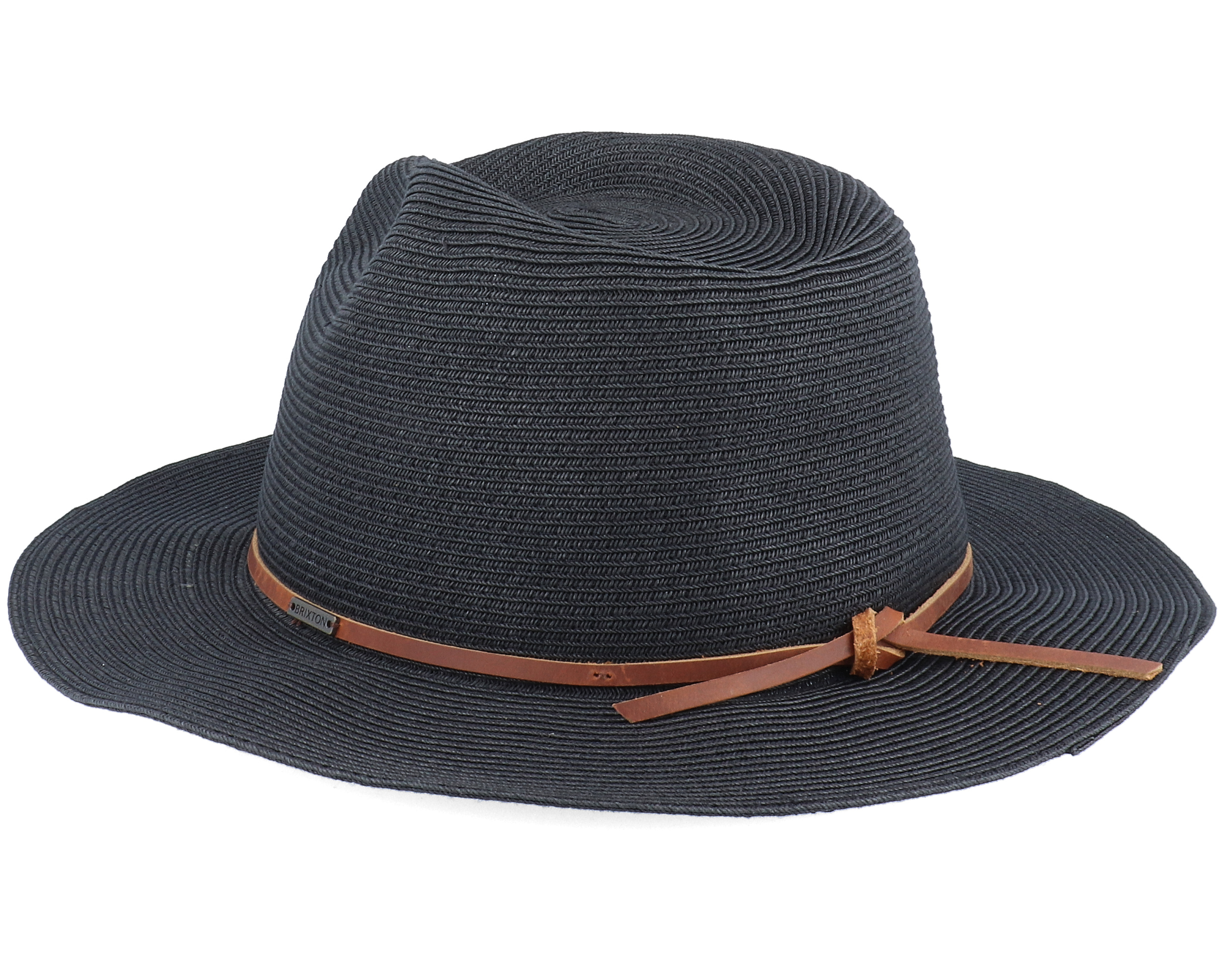 Wesley Packable Black Fedora Straw Hat