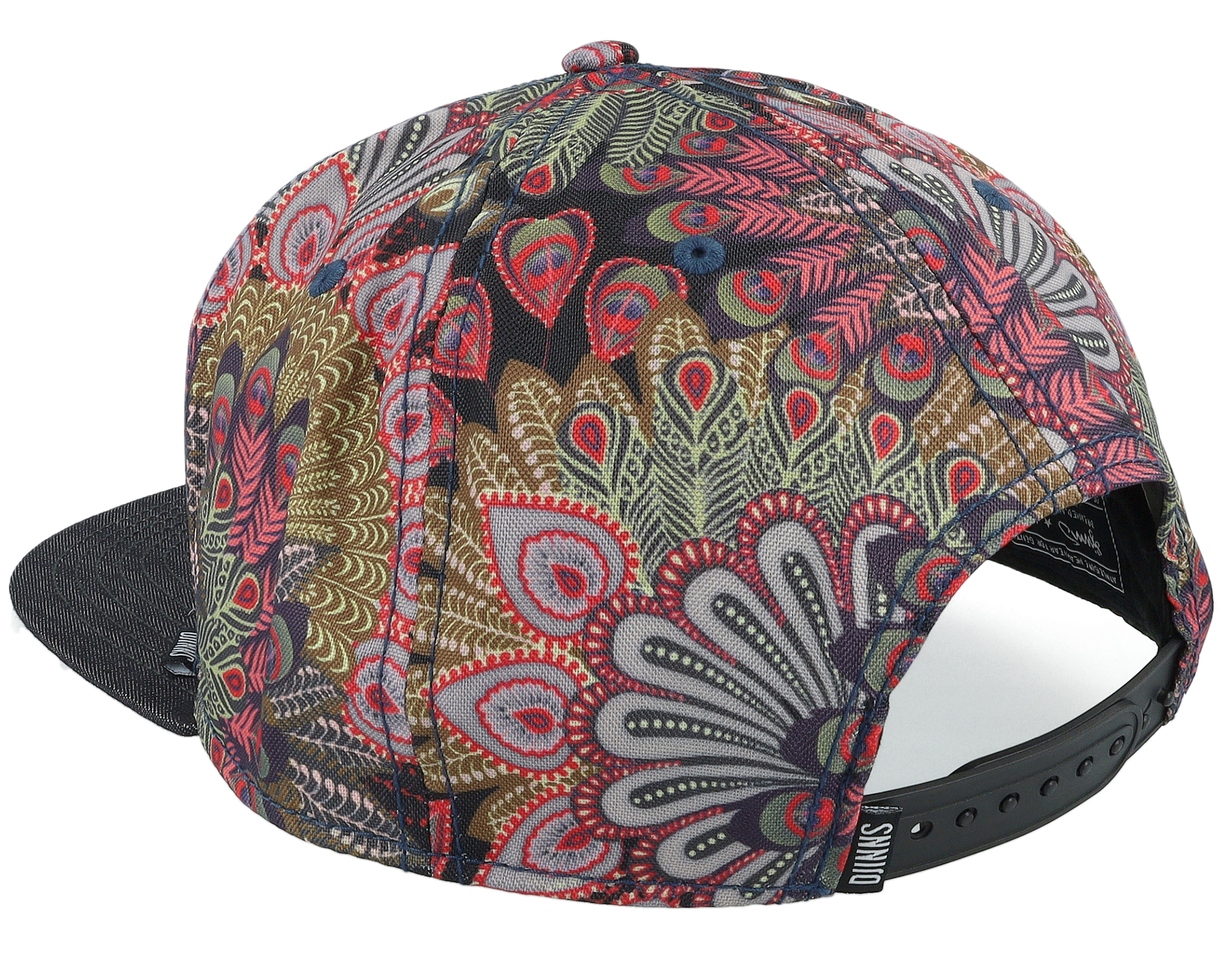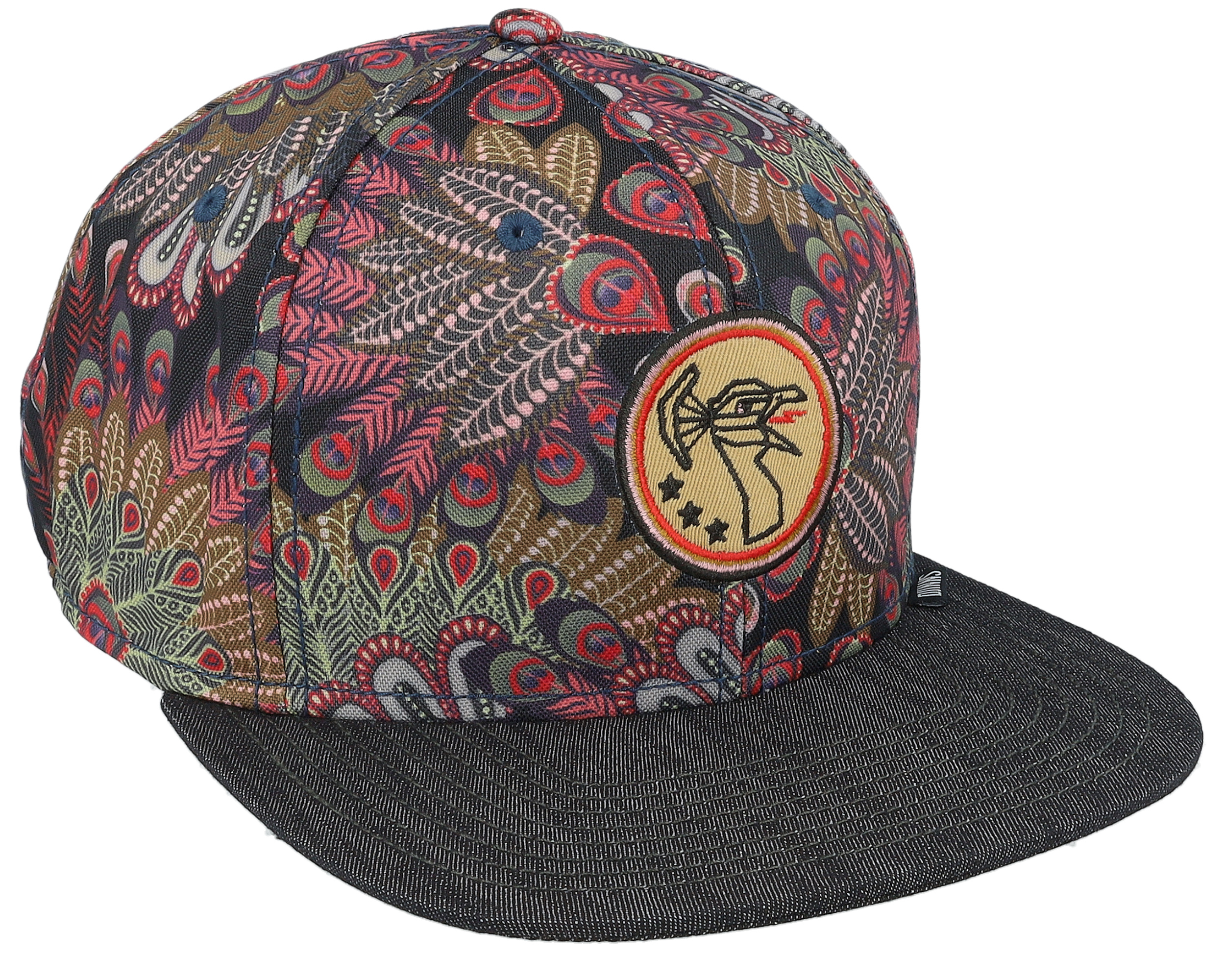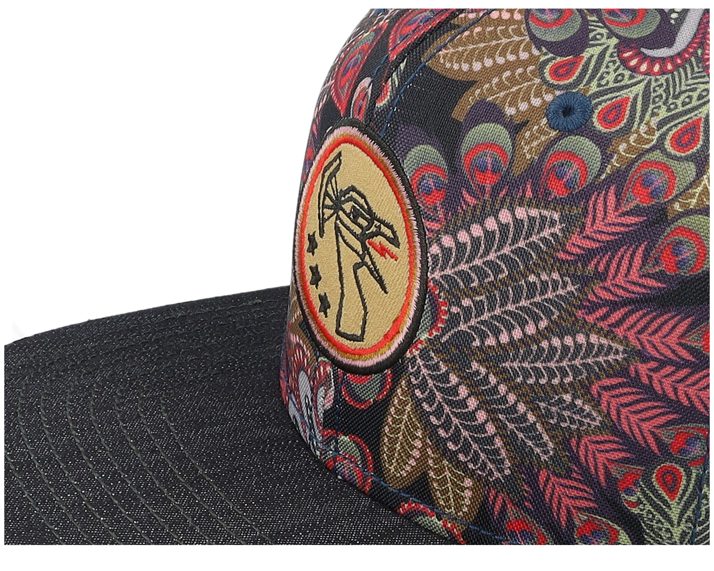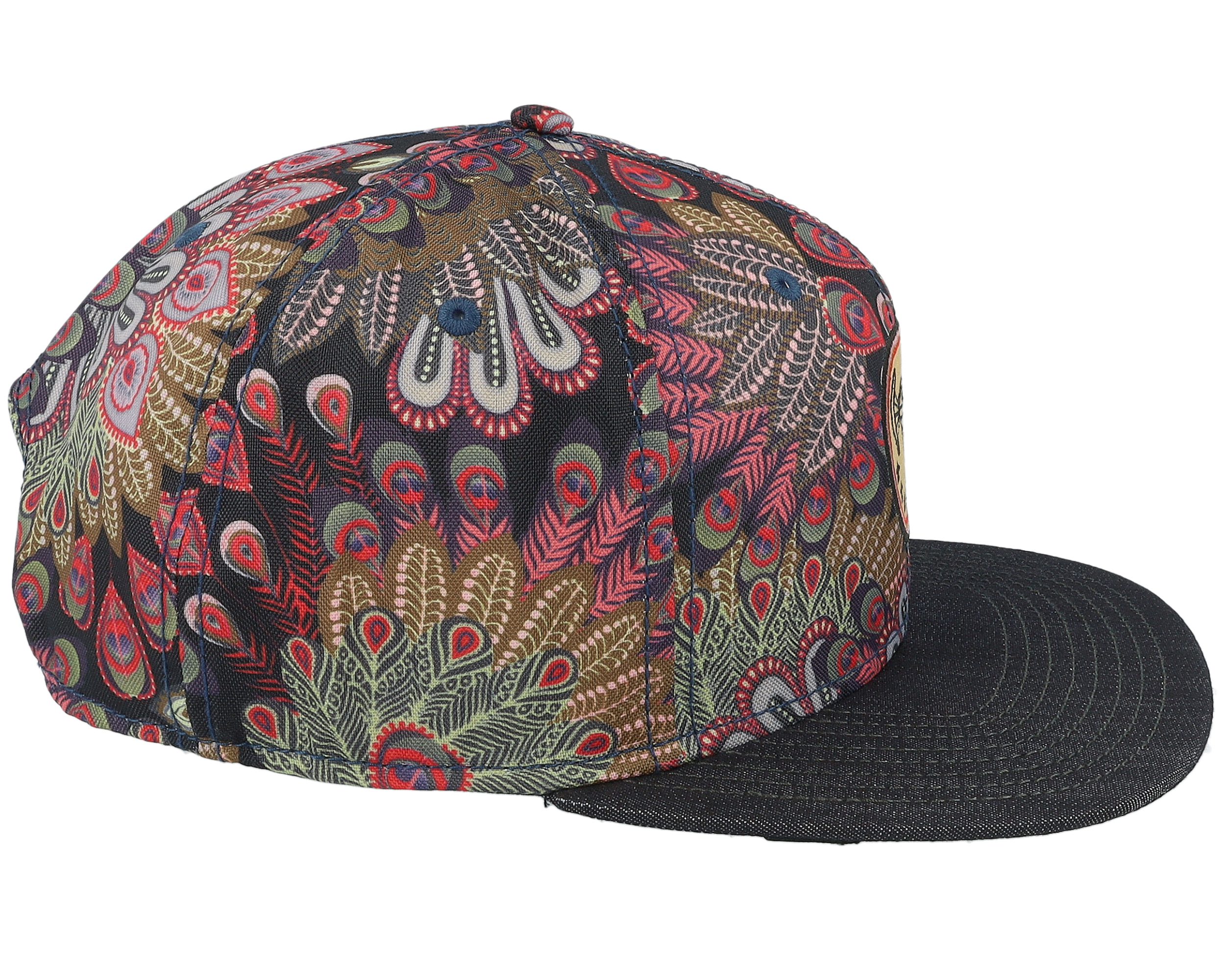 6 Panel Peacock Linen Black Snapback