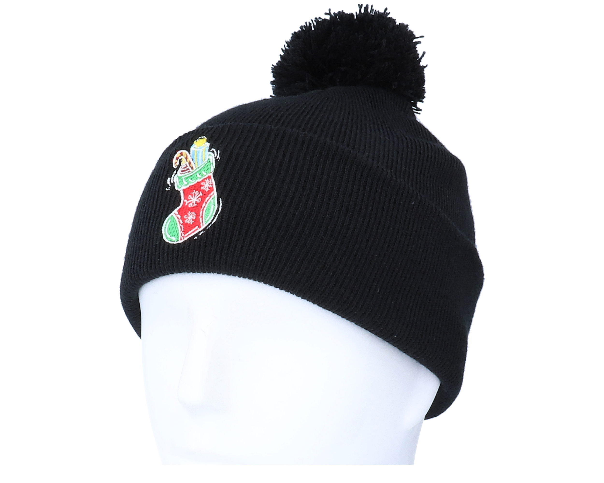 Kids Christmas Sock Gift Black Pom Pom Beanie - Iconic