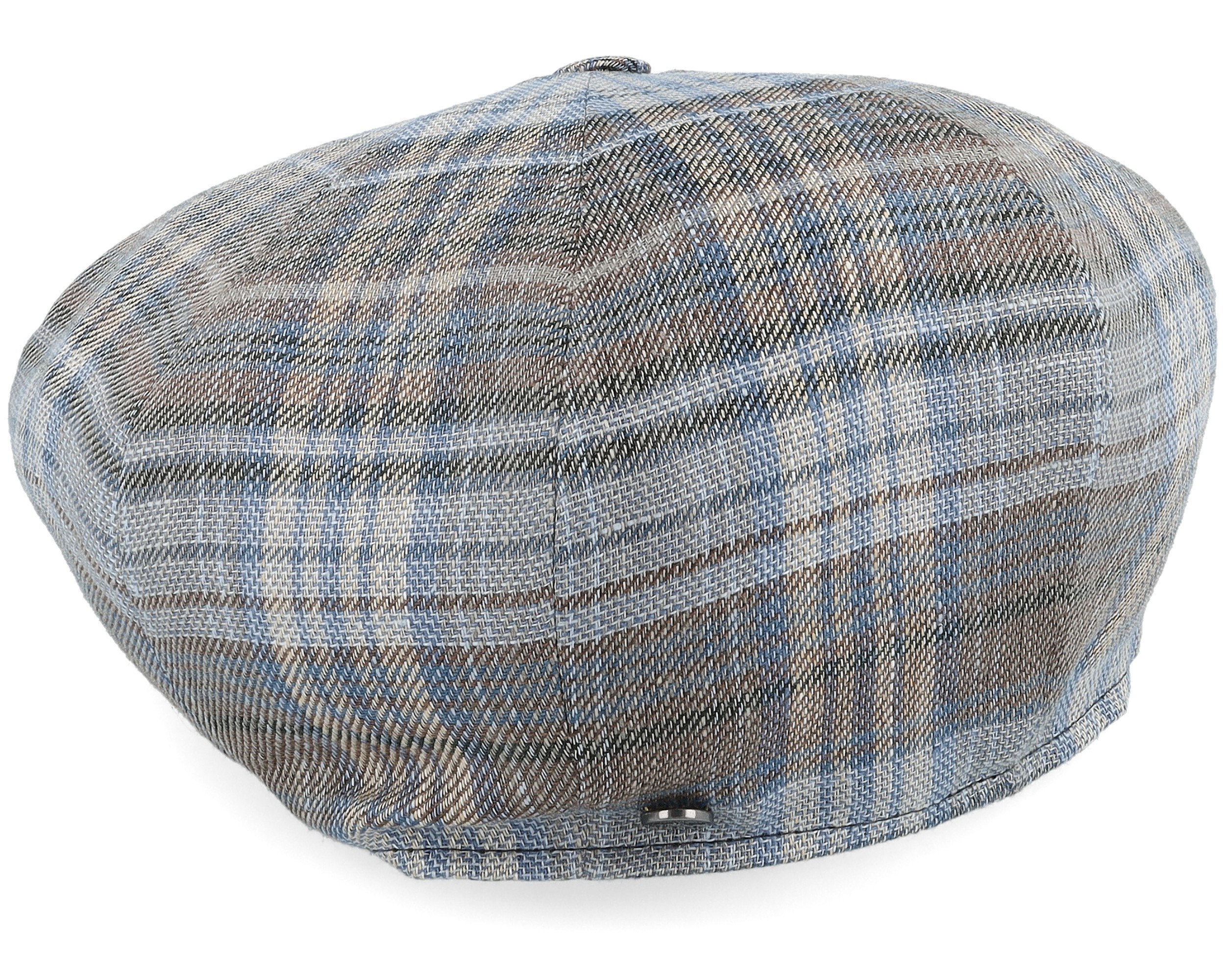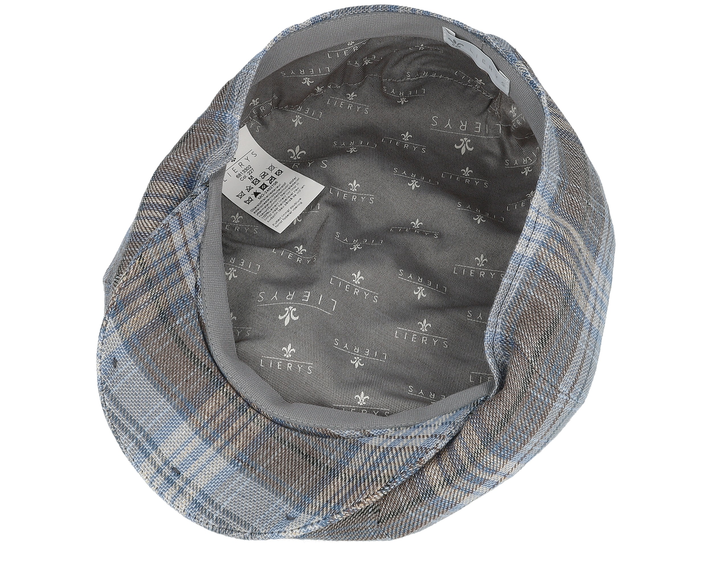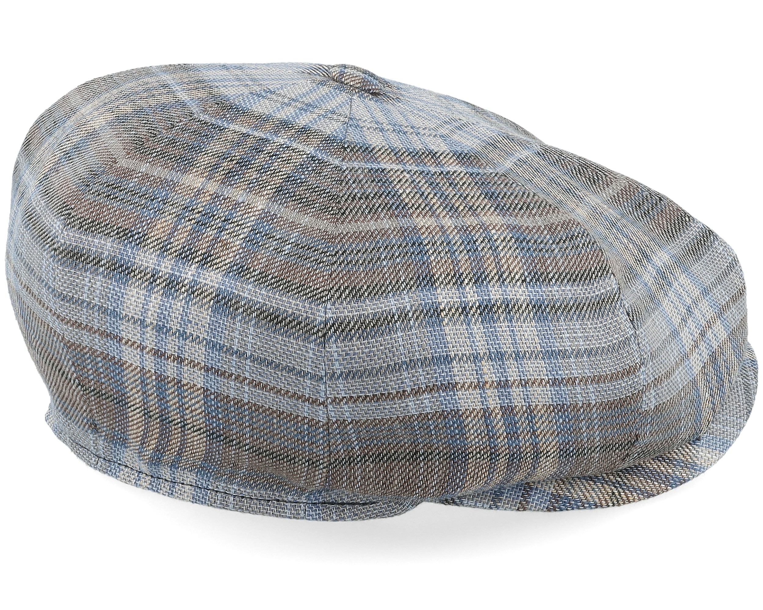 8-panel Linen By Lierys Blue Beige Check News Boy Flat Cap