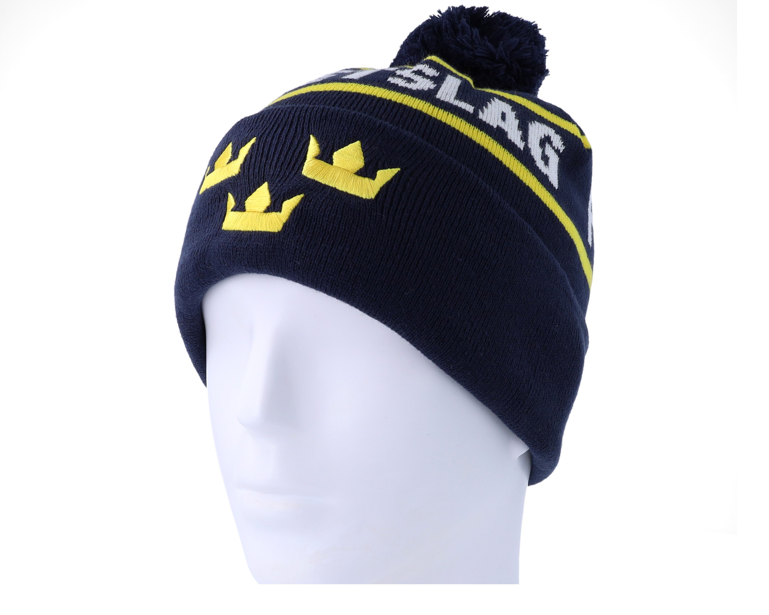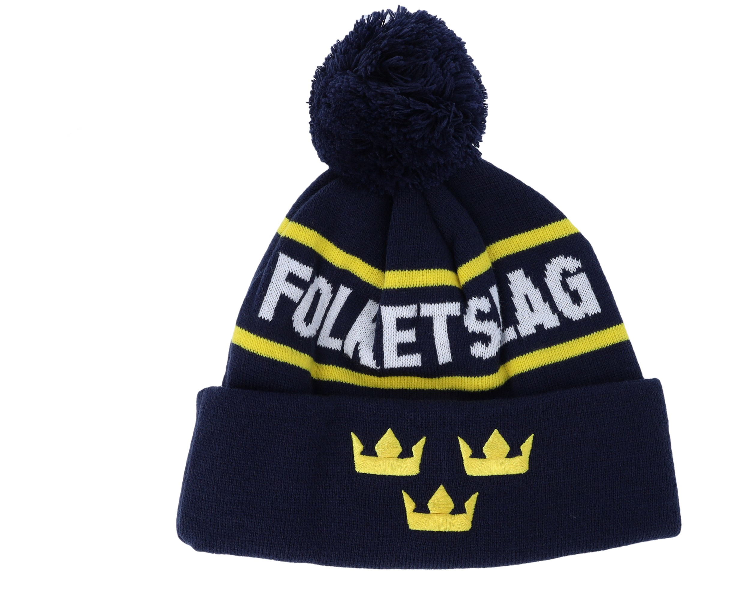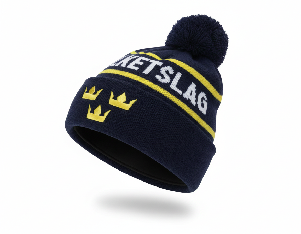 Flag Team Sweden Shield Front Embrodery Navy Pom