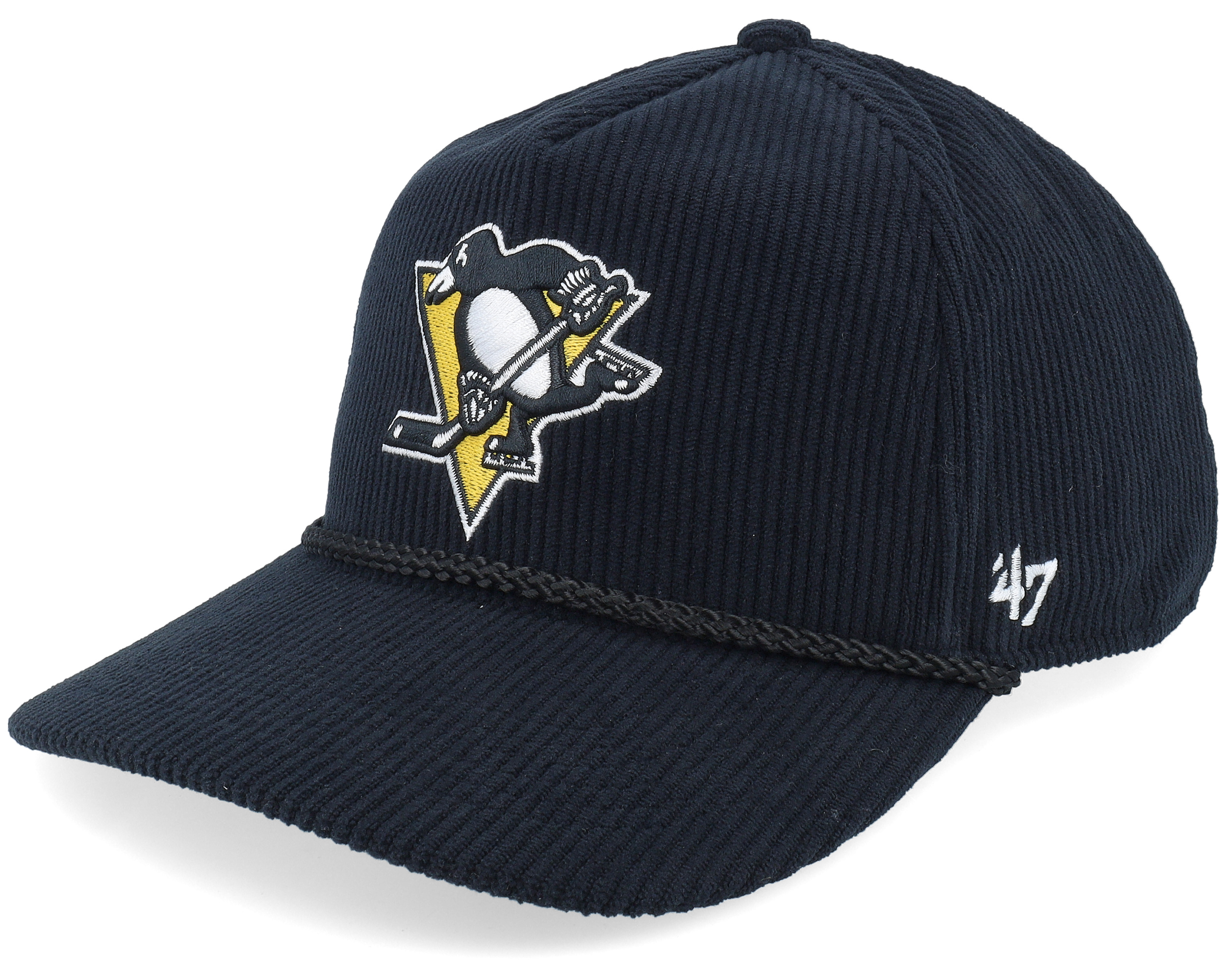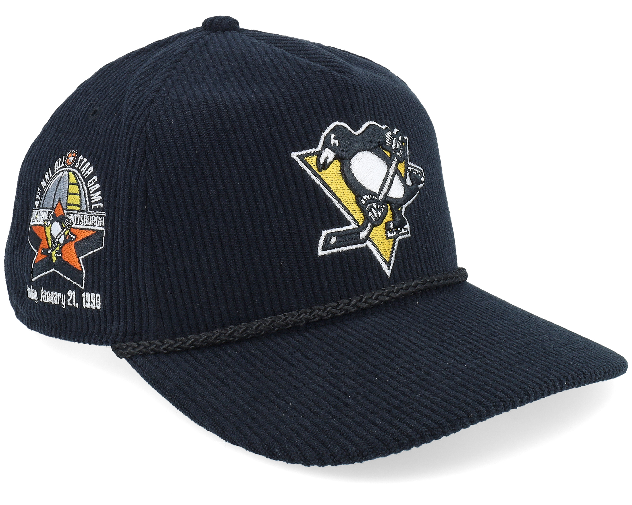Hatstore Exclusive x Pittsburgh Penguins Vintage Sure Shot Cord Hitch Black A-Frame Snapback