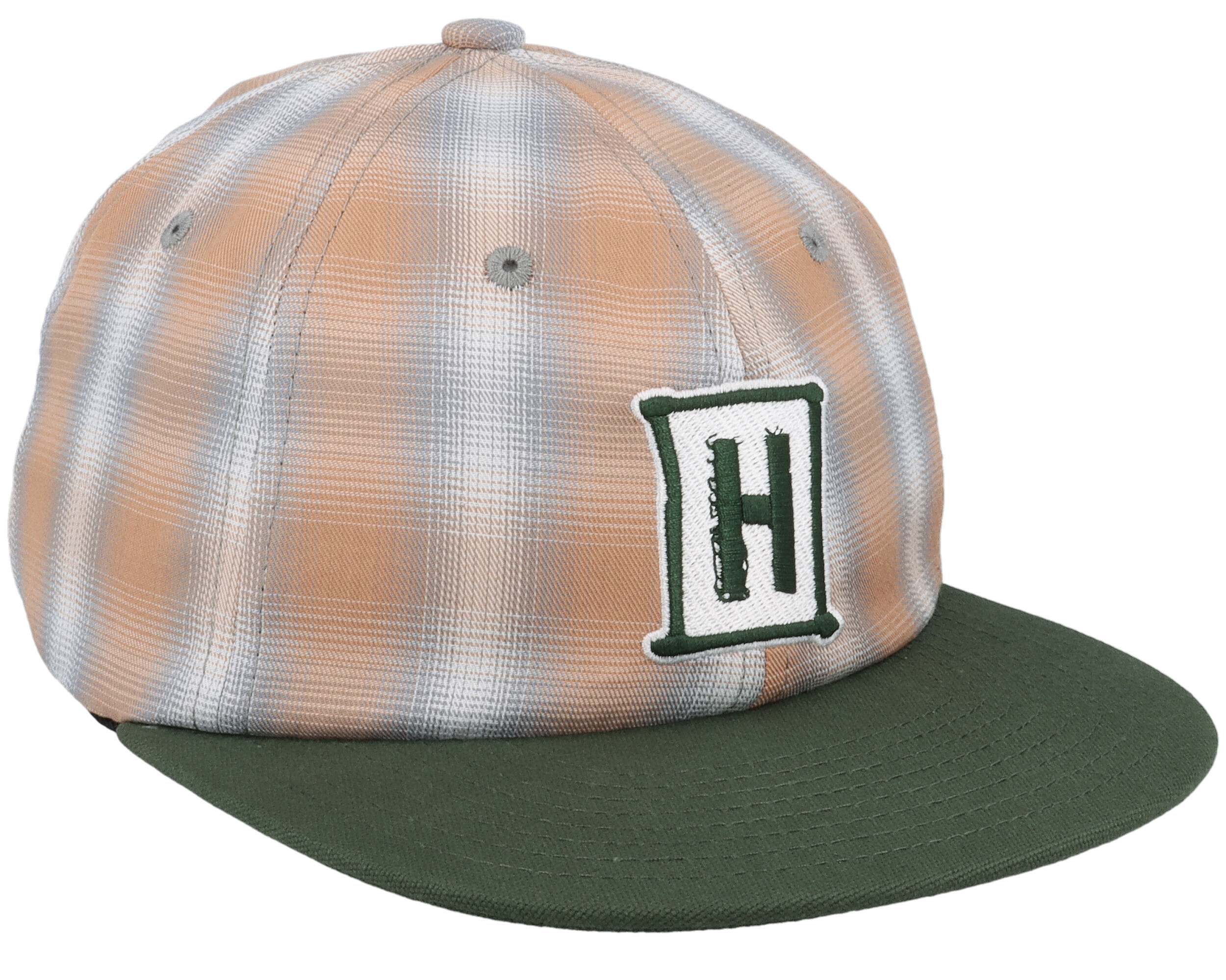 Plaid 6 Panel Hat Orange Strapback